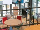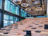 Im Auditorium hat man einen wunderbaren Blick auf den Oberhafen-Kanal sowie das Oberhafengelände. Der Raum ist geprägt durch die nach hinten aufsteigenden Holzstufen. Diese sind als Sitzfläche nutzbar und wechseln sich mit kleinen Terrassen für eine individuelle Nutzung des Raumes ab. Daran anschließend befindet sich eine kleine Außenterrasse.
